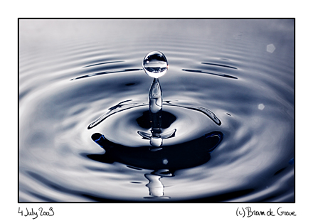 - You’re actually photographing the background reflected by the water, so aim your speedlite at the backdrop, not at the water surface itself. I’ve had a boring white one. Use more colourful backgrounds to get more interesting patterns.